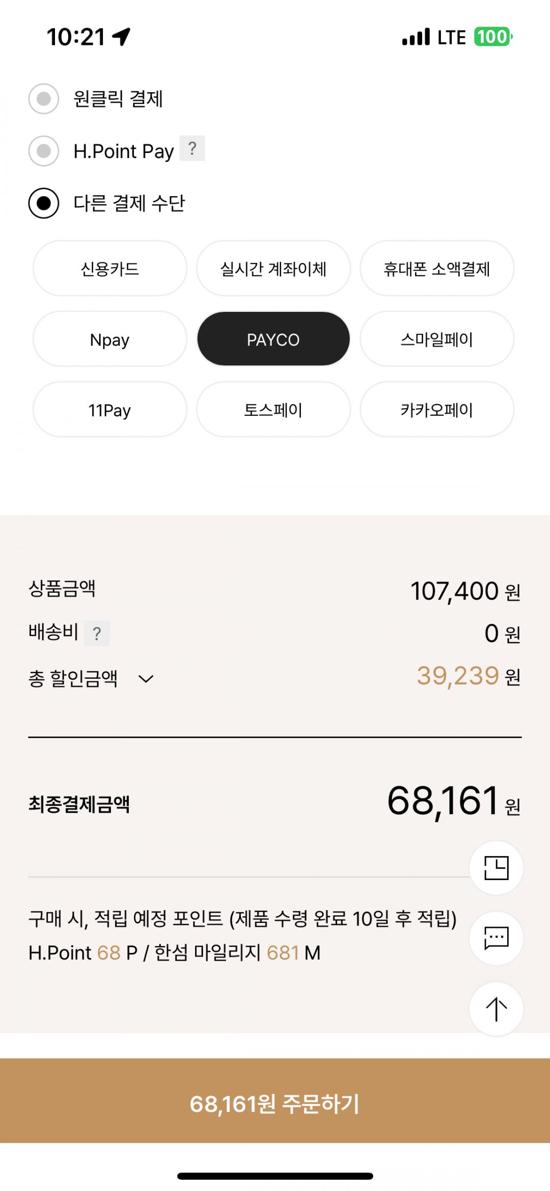 타미남성 10%, 뉴베네핏15%, 14,000P 별도다운받아서 적용하면 최종가 68161원 가격 나오네요