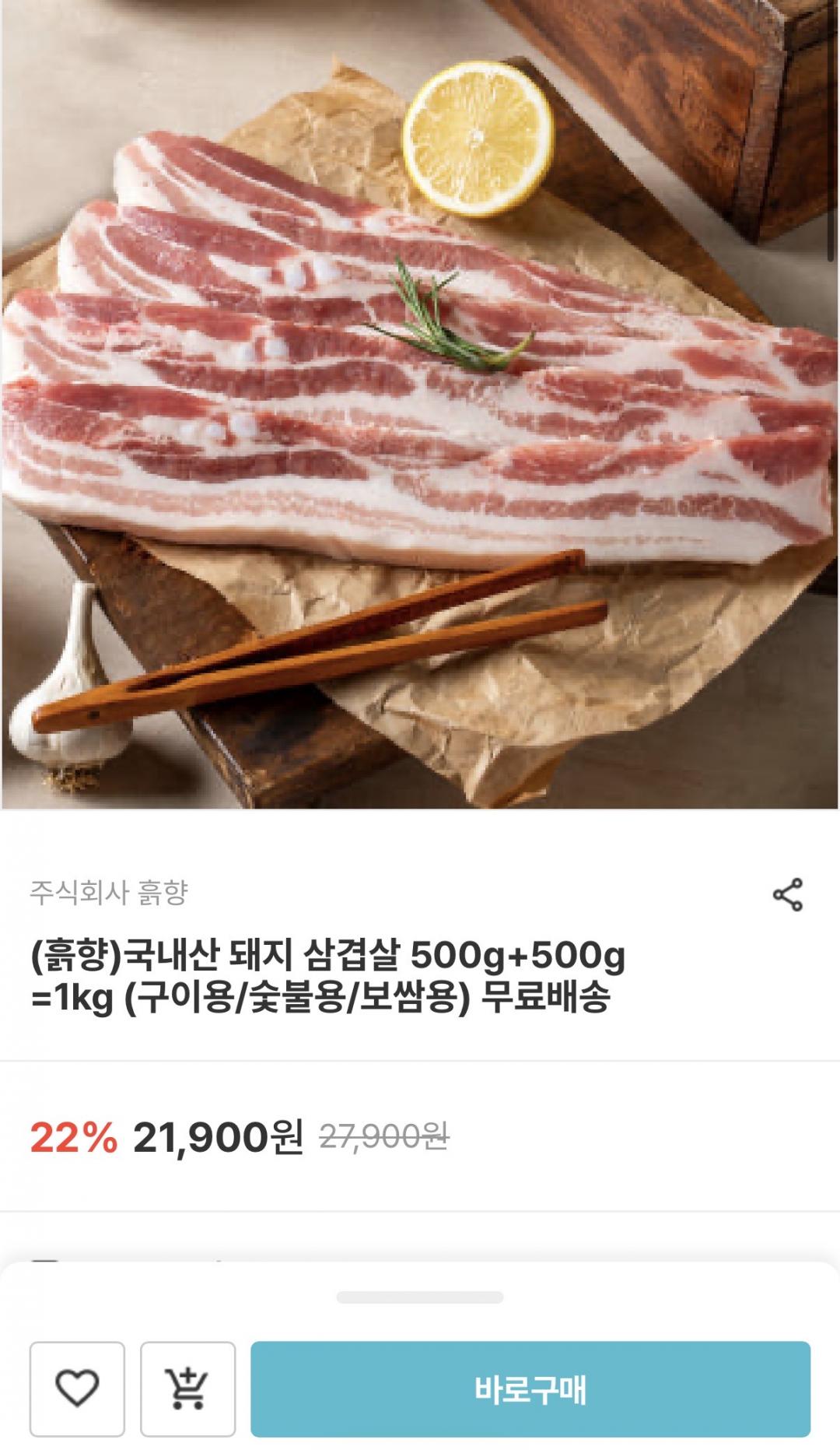 [남도장터] 국내산 돼지 삼겹살 1kg (17,520원/무료배송) > 국내핫딜