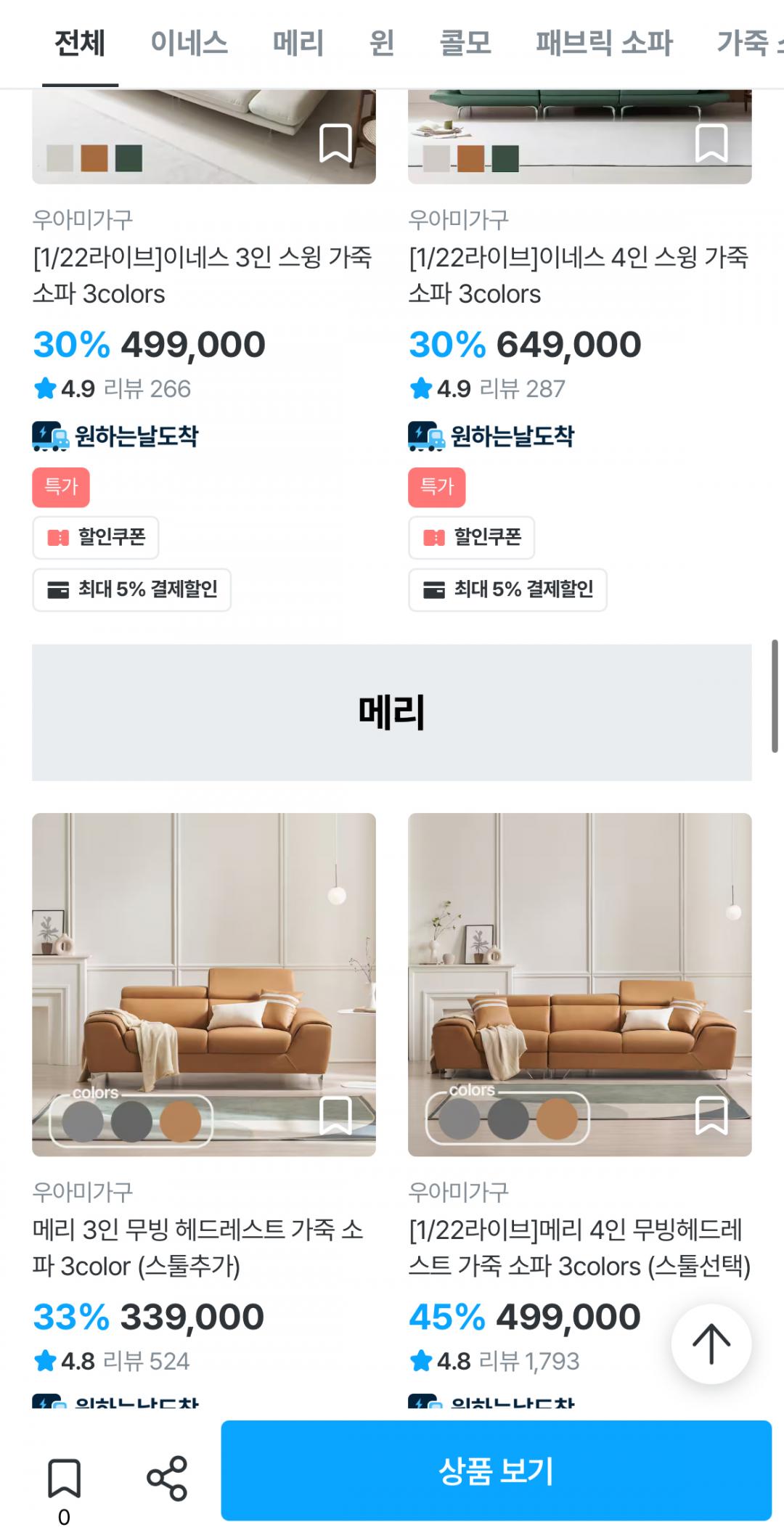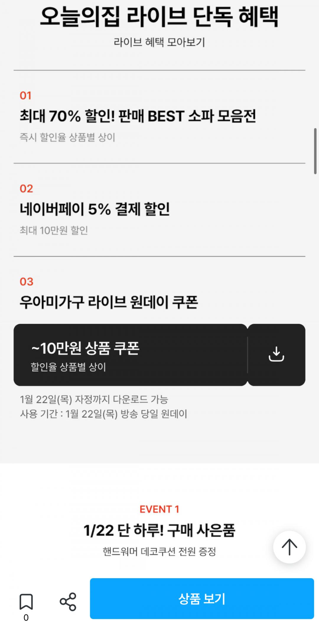 오늘의집에서 우아미가구 라이브 방송 예정이네요