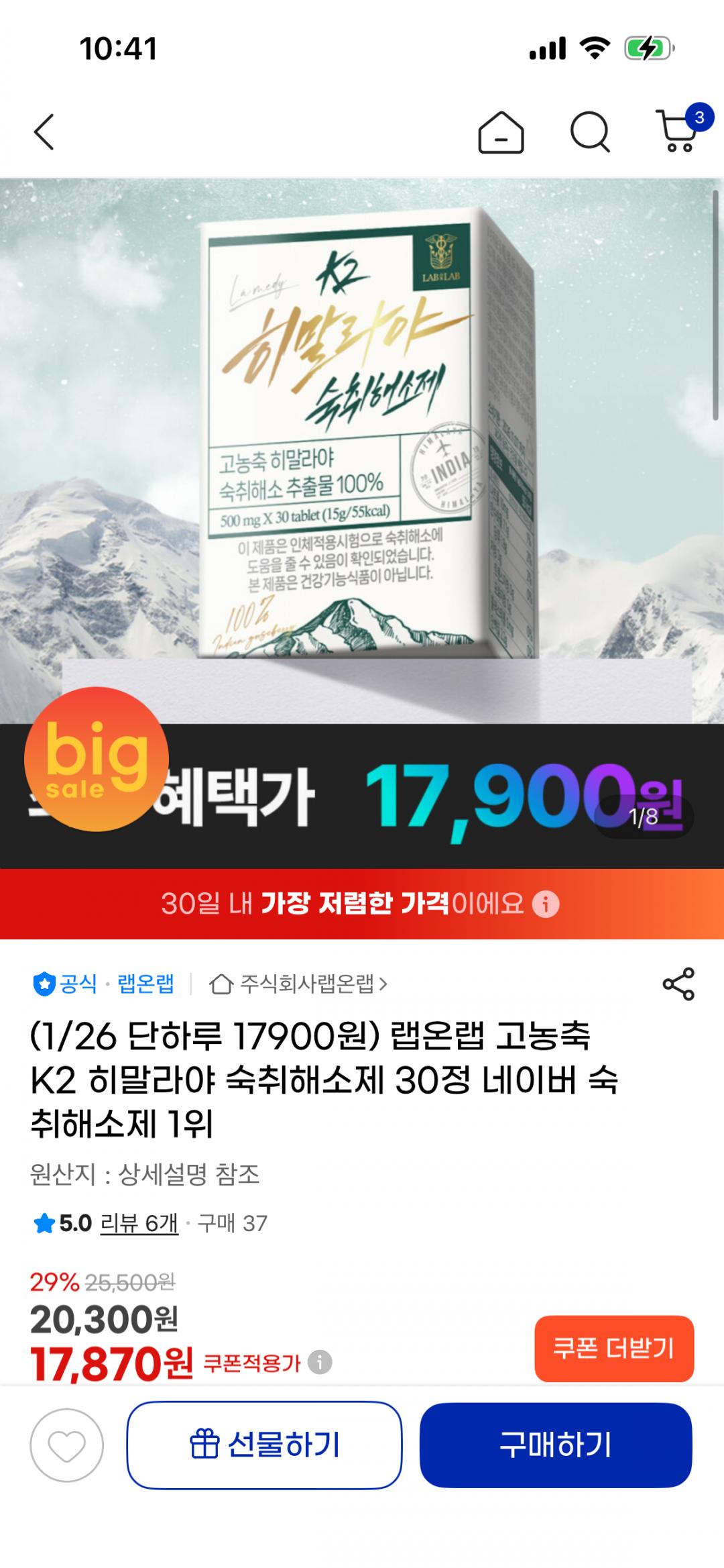 [지마켓] 랩온랩 고농축 K2 히말라야 숙취해소제 30정 (17,870원/무) > 국내핫딜