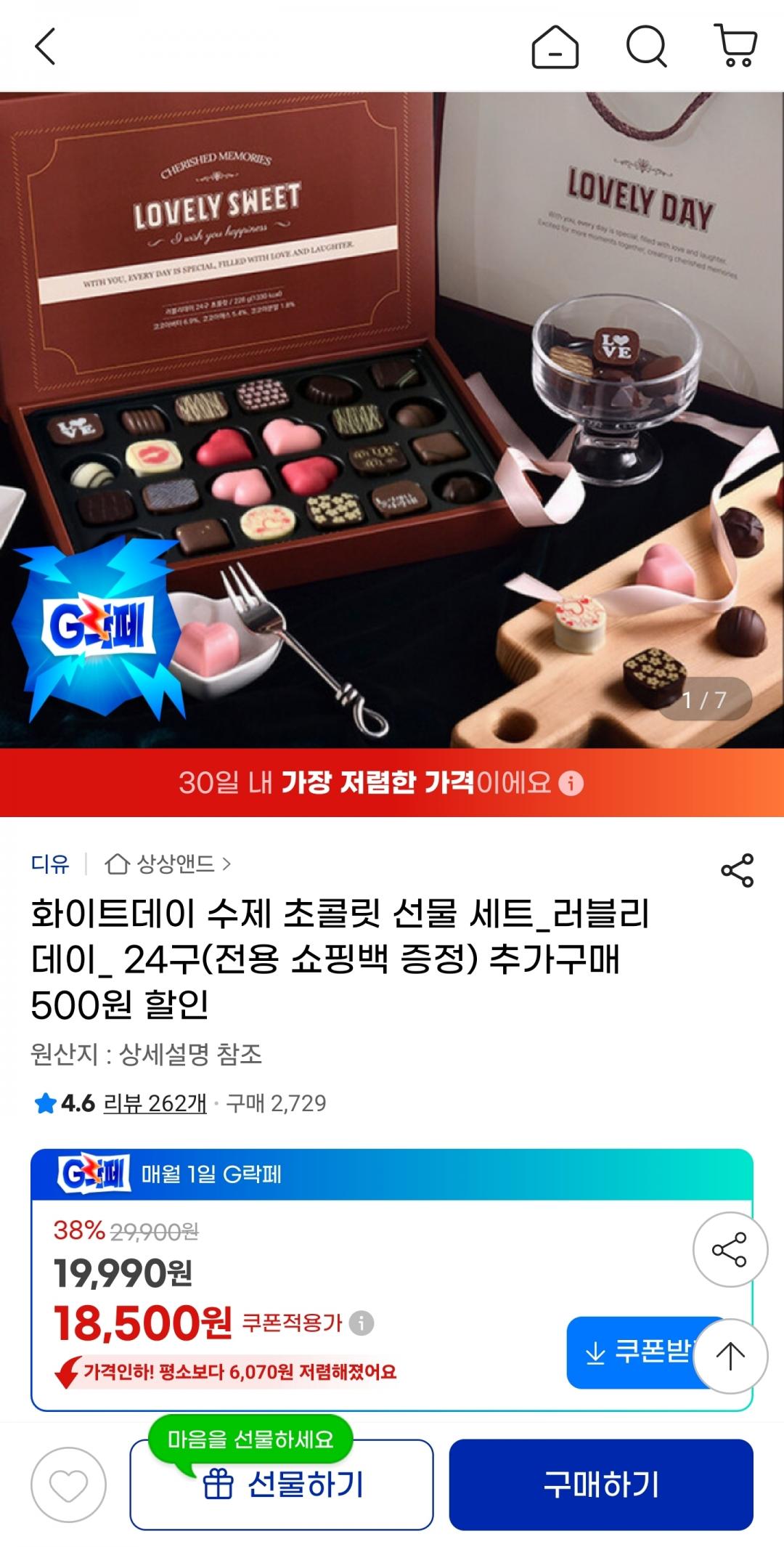 [지마켓] 화이트데이 수제 초콜릿 24구 선물 세트 (18,500원/무료) > 국내핫딜