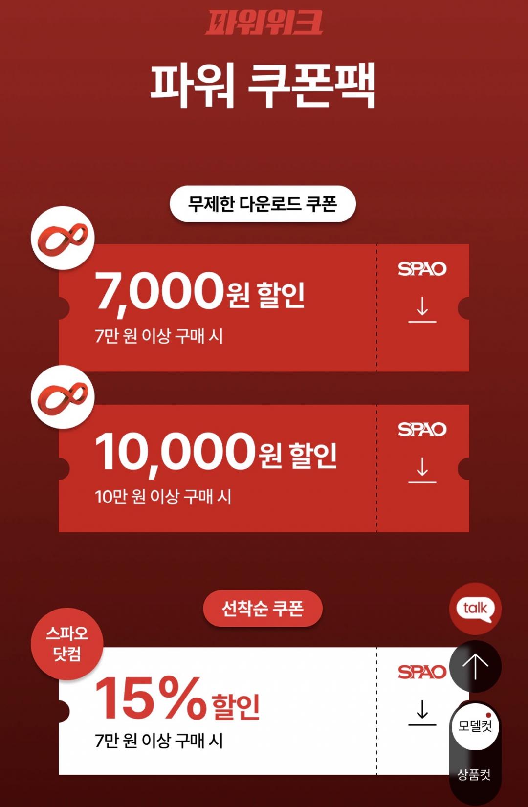 스파오 브랜드 위크로 바람막이나 파자마, 셋업 등 다양하게 할인 하고 있습니다