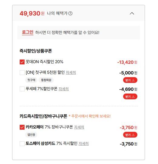 롯데온 앱접속 후 카카오페이 7% 할인됩니다