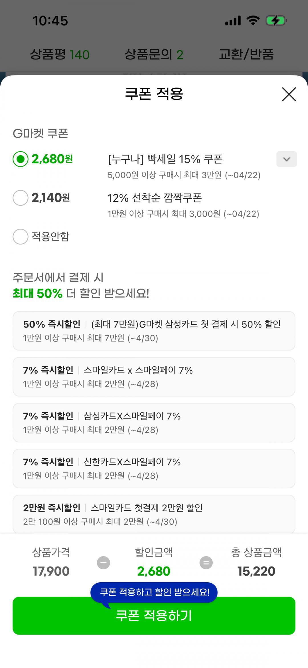 5만원 이상 사면 개당 15% 할인됩니다