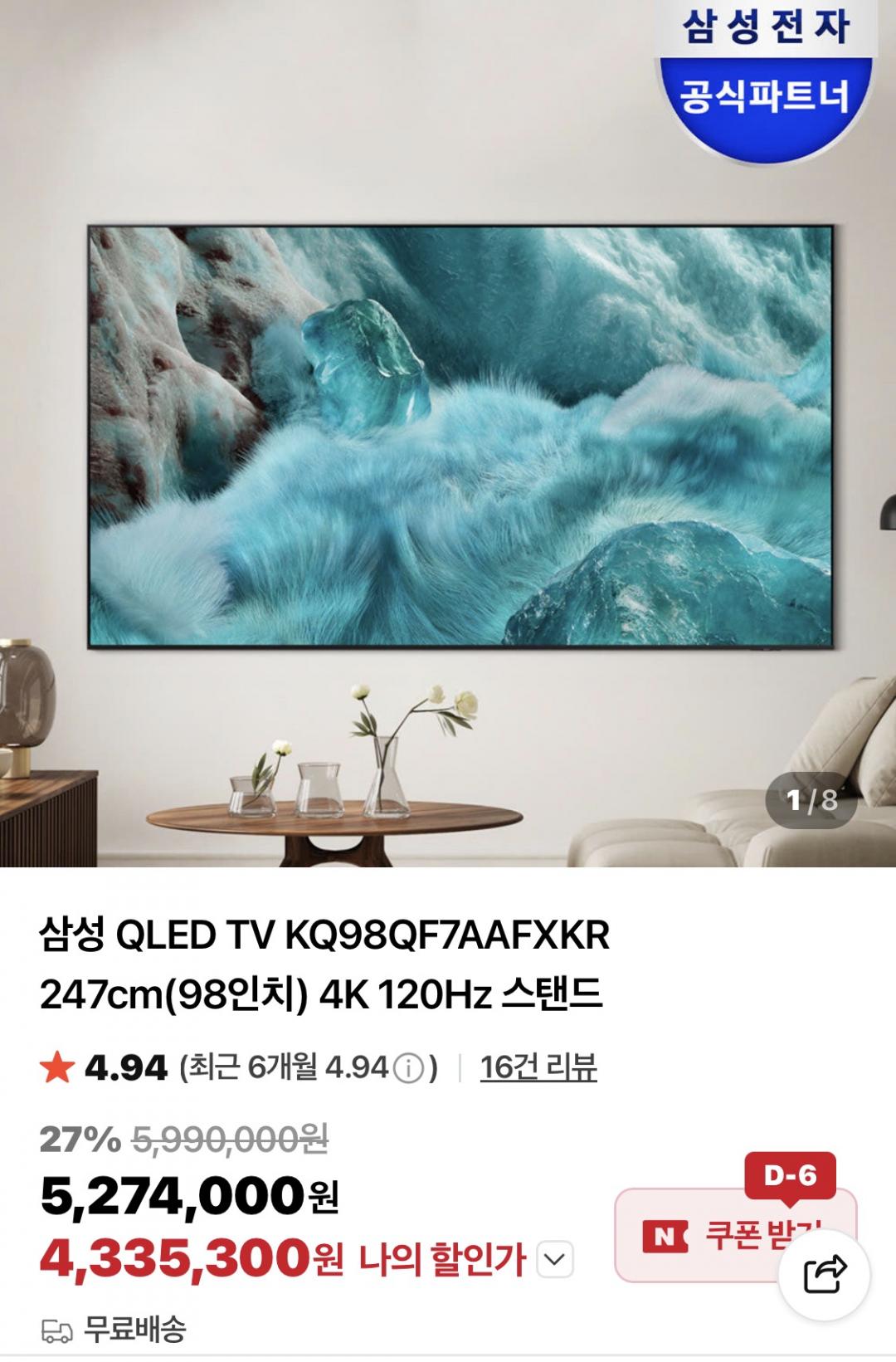 QLED 4K에 주사율 120Hz면 가격대비 스펙도 좋고