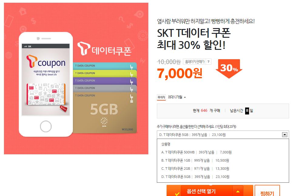 티몬에서 데이터 쿠폰 파네용
