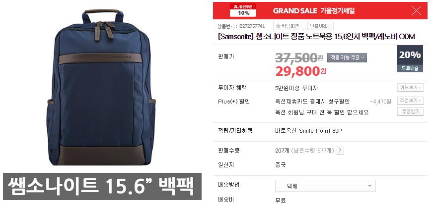 그래도 샐러리맨계의 노스페이스인 쌤소나이트 백팩 하나 가지고 계셔야겠다는 분은 괜찮은 기회같습니다.