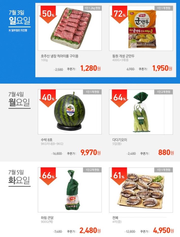 일,월요일에 척아이롤, 수박 사야겠네요. |