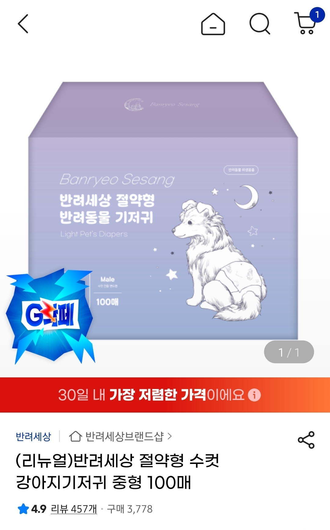 [지마켓] 절약형 수컷 강아지기저귀 중형 100매 (19380원/무료)