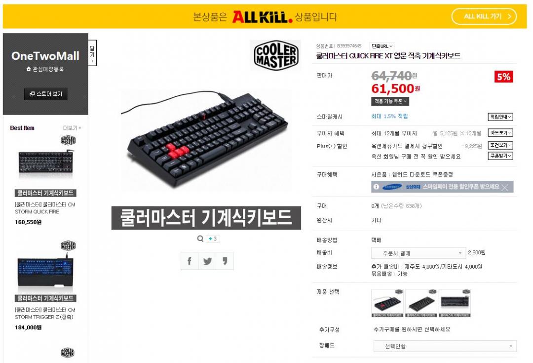뽐게에도 올라온 상품이네요 영문이라 아쉽긴하나 오존보다 가격이 조금 저렴하네요...허나 LED미지원이 아쉽긴합니다 ㅎㅎ 물론 키보드 브랜드로 본다면 오존보다 쿨러마스터가 더 좋을수도... |