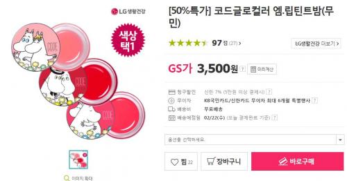 코드글로컬러 엠.립틴트밤(무민)(3,500원)