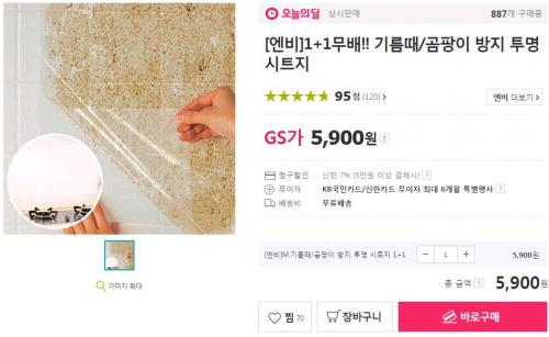 1+1무배!! 기름때/곰팡이 방지 투명시트지(5,900원)