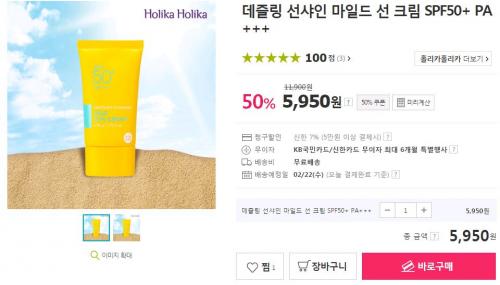 데즐링 선샤인 마일드 선 크림 SPF50+ PA+++(5,950원)