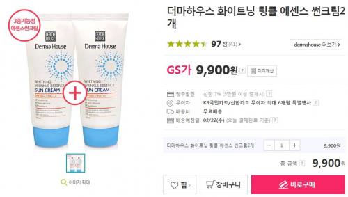 더마하우스 화이트닝 링클 에센스 썬크림2개(9,900원)