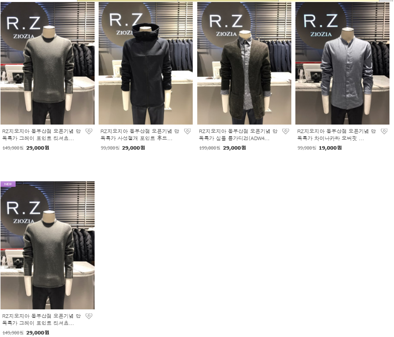 지오지아 고가라인인 R.Z 지오지아 동부산점 오픈특가 하네요 80% 정도 같아요