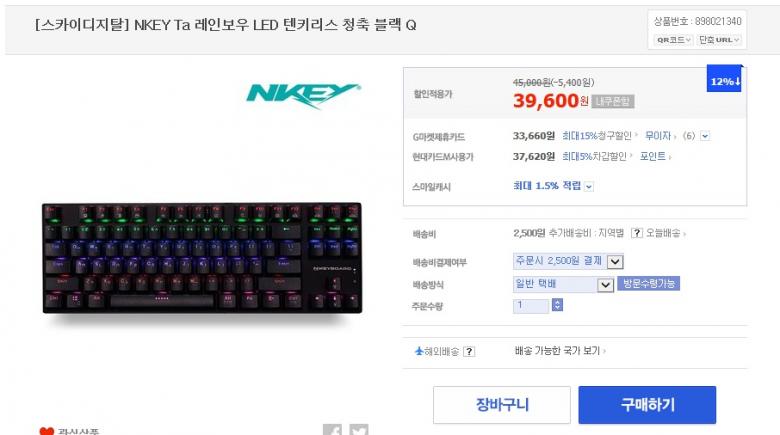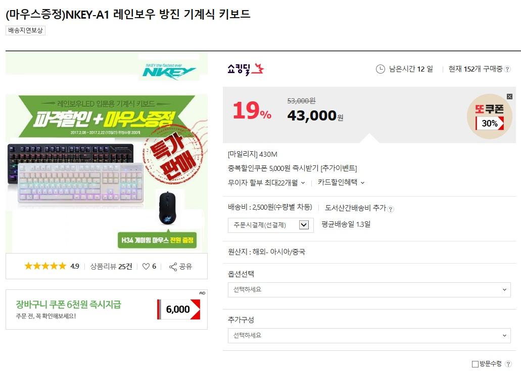 네이버 지식쇼핑 기준 NKEY-A1 검색시 39900원 최저가 나오는데 마우스 사은품 증정도 없을뿐더라 방진 청축이