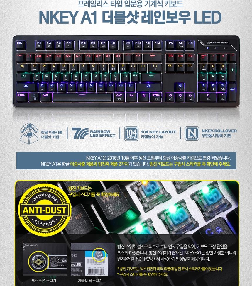 [11번가] NKEY-A1 레인보우 방진 오테뮤 청축 키보드 + 마우스증정 (43,000원/2,500원) > 국내핫딜