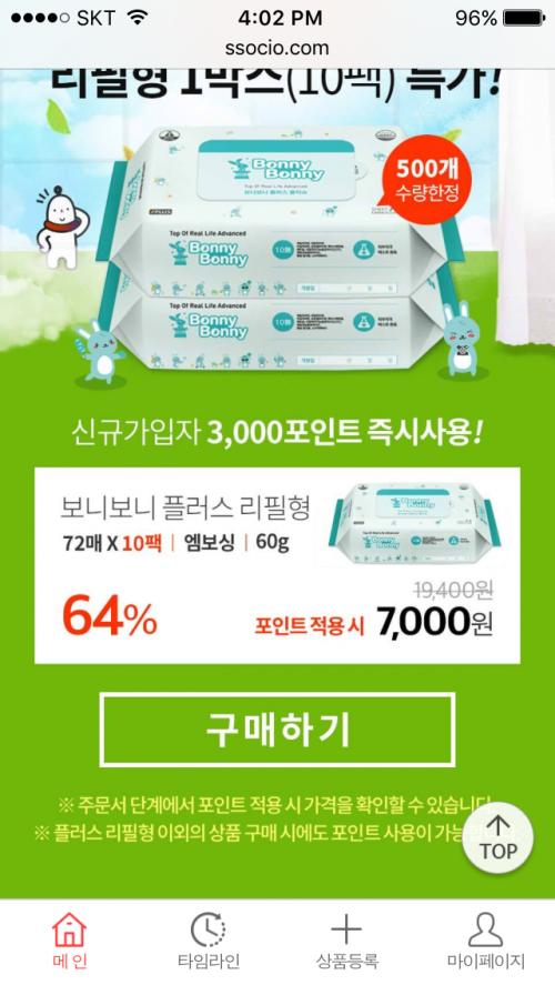 보니보니 플러스 물티슈(72매 x 10팩) 특가 중이에요.