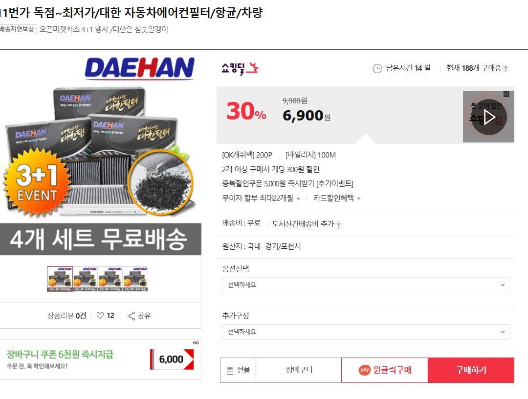 [11번가] 대한 활성탄 자동차 필터 4개 (6900/무배) > 국내핫딜