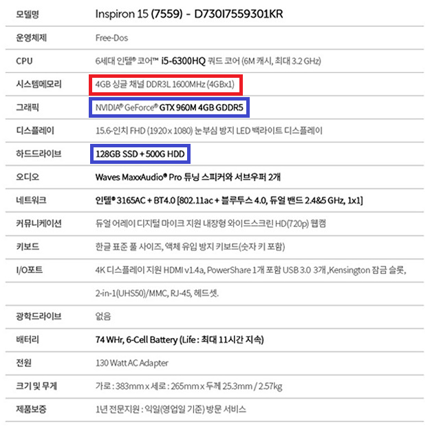 SSD+HDD 듀얼스토리지 기본 구성은 장점입니다.