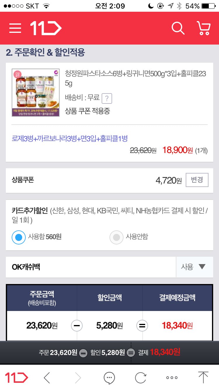 NOW배송쿠폰이라 카드할인만 적용하였습니다~ |