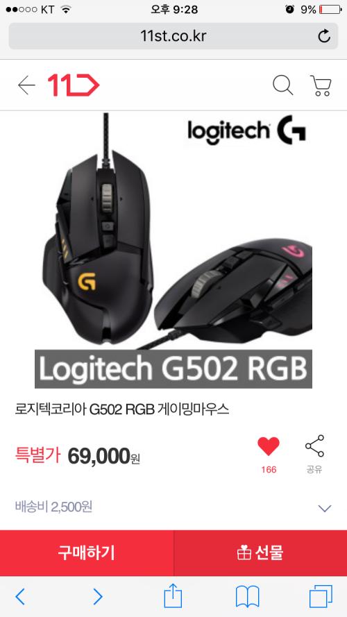 [11번가] 로지텍 G502 RGB (69000/2500)