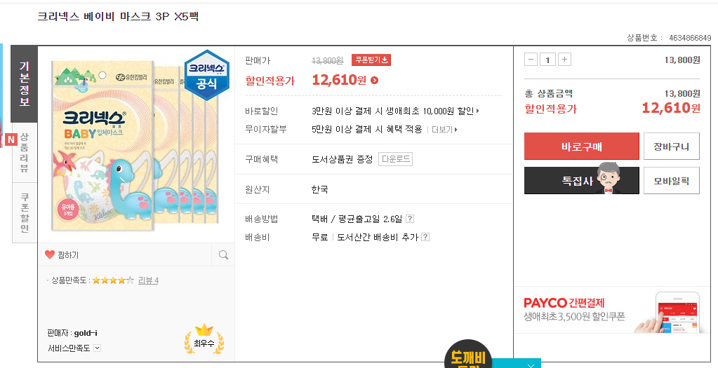 네이버에서 크리넥스 베이비 마스크 로 검색하시면