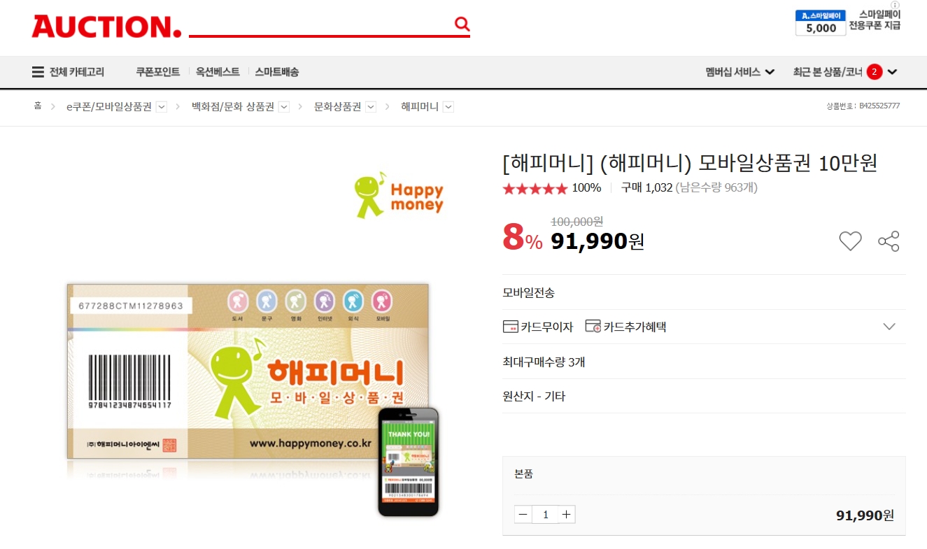 그래도 오랫만에 해피머니 이정도면 괜찮네요 두장겟했습니다 ^^ |