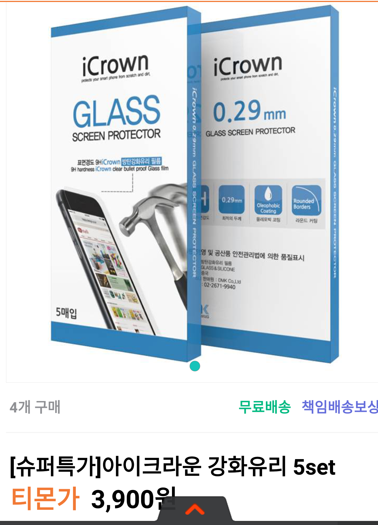 [티몬] 아이크라운 강화유리 5set (3,900원/0) > 국내핫딜