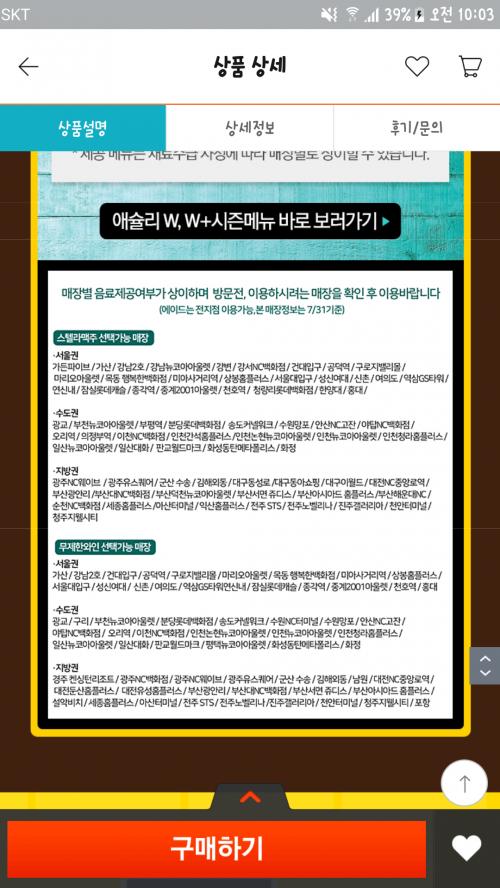 이거 쓰실 분들 좀 주의하세요, 주말에 신촌점에 갔는데 다들 이 티몬 쿠폰과 카카오 쿠폰으로 메인 주문이 엄청 밀려있더군요..저는 카카오 쿠폰이라 치킨이었는데 다 먹고 후식도 다 먹은 후에야 나와서 결국 포장해갔습니다(대략 70~80분 후에야 나온);;그리고 일부 매장에만 따로 있는 메뉴라는 목살 리조또?그건 자리에 하나씩 주는 건데 받지도 못했고 받을 생각도 못했네요..나올 때보니 대부분이 스테이크를 먹고 있더군요;;보려던 영화도 뒤로 취소하고 재예매하구요;; 아마 이번주도 주말엔 몰릴 듯 하니 여유롭게 가셔서 식사하세요~ | ||