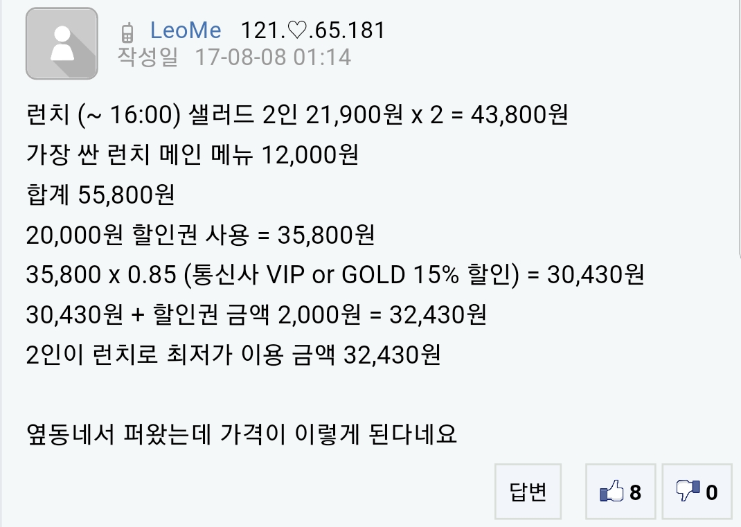 꼼수네요. 샐바 2인 + 메인메뉴 1인 하면... |