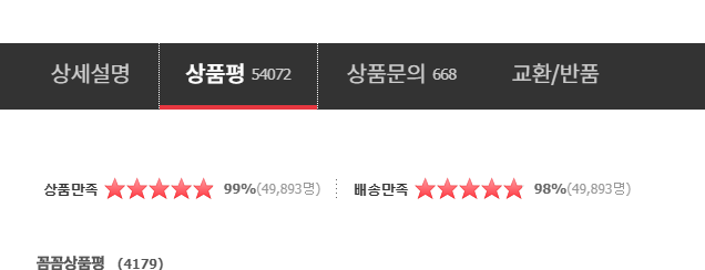 무려 5만건이 넘는 평인데 평점이 99%입니다. 이정도면 믿고 사도 될거 같습니다.