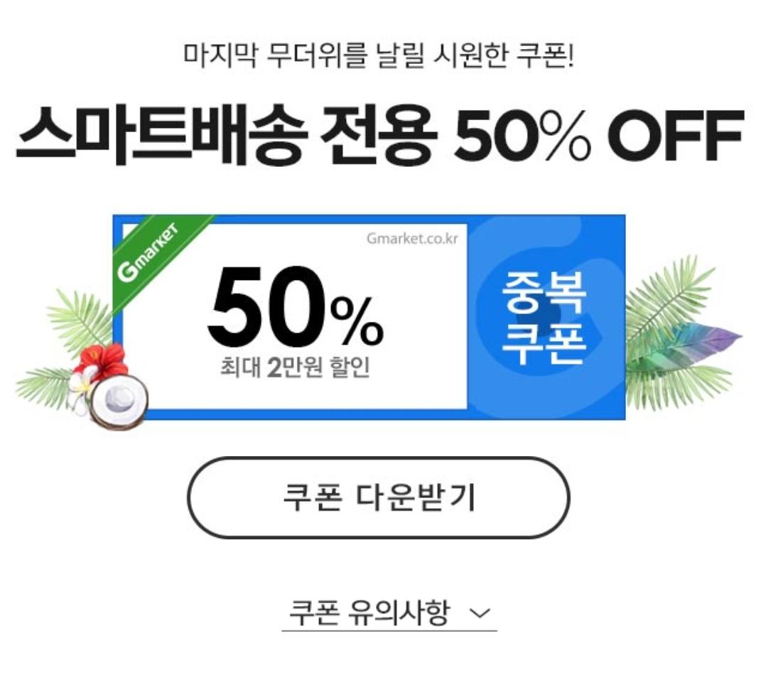 50% 쿠폰 링크 : http://mobile.gmarket.co.kr/Display/SpecialShopping?lcId=&sid=155335