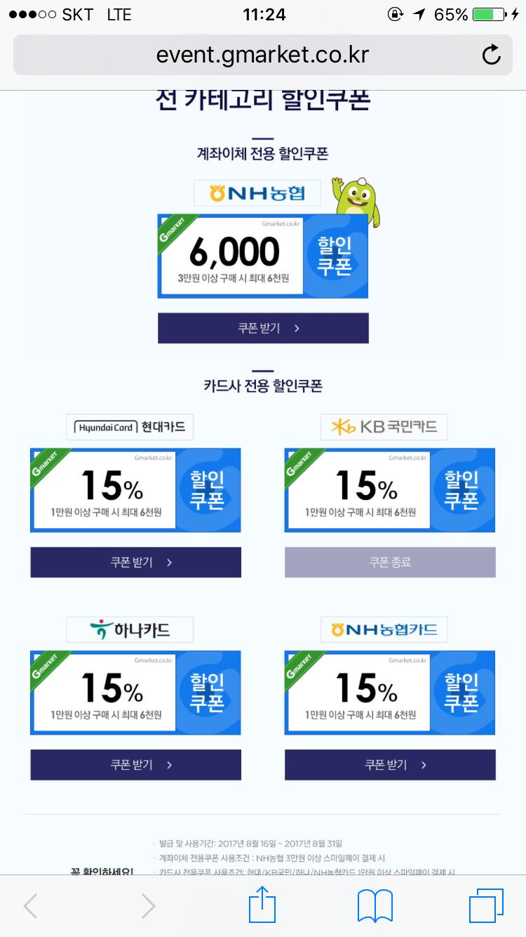 아침에 국민카드쿠폰 안받아지더니, 역시 쿠폰종료네요.