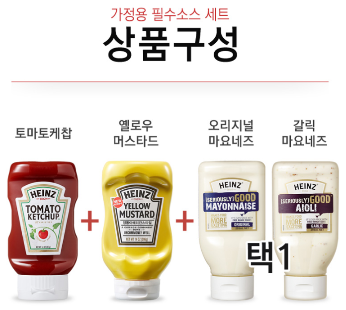 케첩/머스타드/마요네즈 구성 말고도 파스타 소스나 케첩으로만 구성된 상품도 있으니 둘러보세요