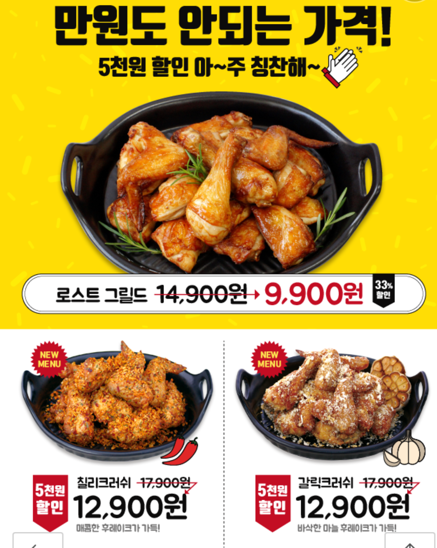[카톡] 오꾸닭 3종 5천원 할인 (9,900/) > 국내핫딜