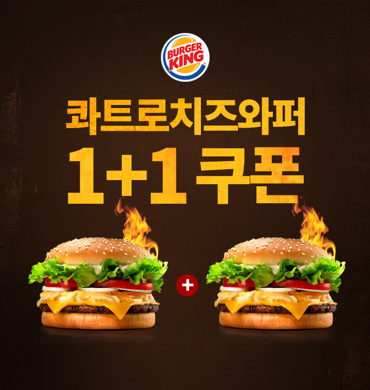 [티몬] <재오픈> 버거킹 콰트로치즈와퍼 1+1 쿠폰 (0원/무료) > 국내핫딜