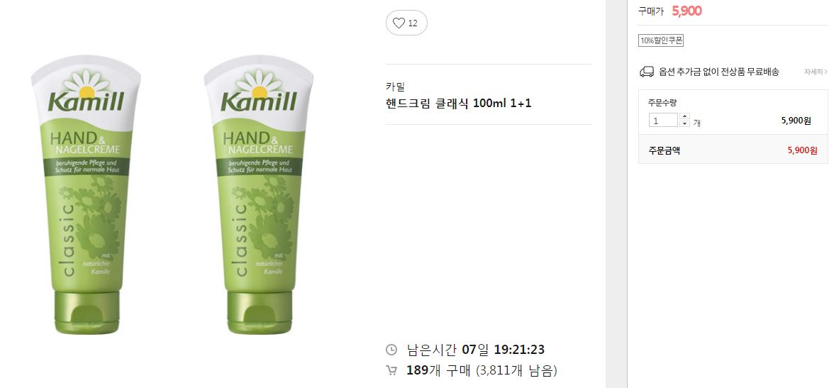 [G9] 카밀 핸드크림 클래식 100ml 1+1 (5,310원/무료) > 국내핫딜