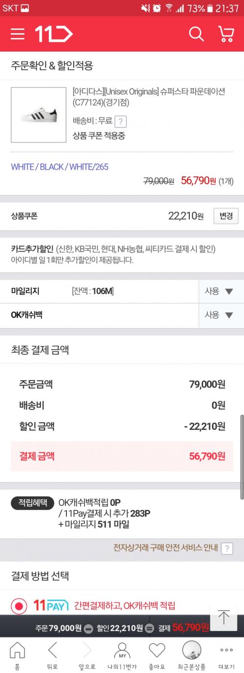 전 다른거 산다고 카드할인 써버려서....ㅜ