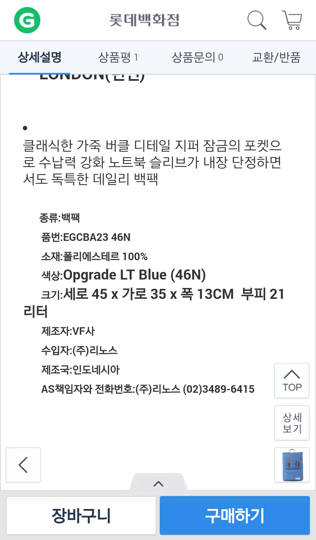 이스트팩이라 내구성,품질은 괞찮을것 같고요