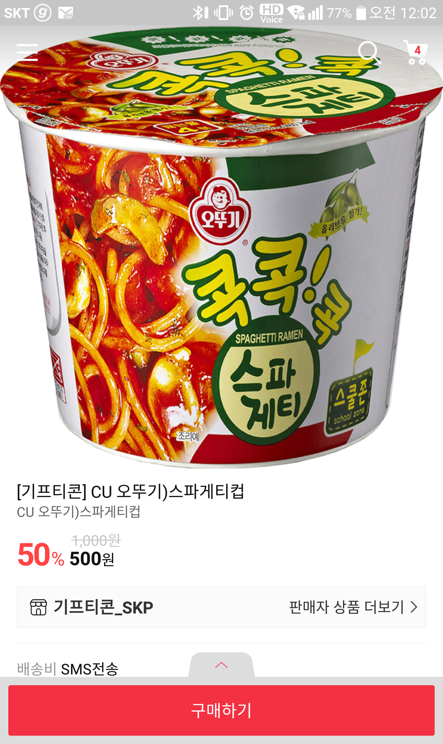 [11번가] cu 오뚜기 스파게티컵 (500/무료)