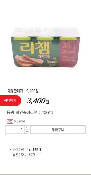 [홈플러스]동원 와인숙성리챔 340G*3 (3400/3000) > 국내핫딜