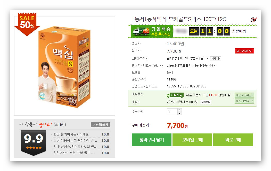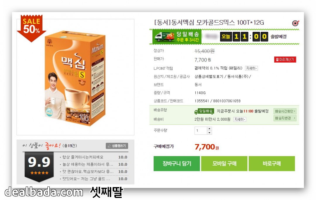 커피 3세트 구매하시면, 무배 20790원입니다.