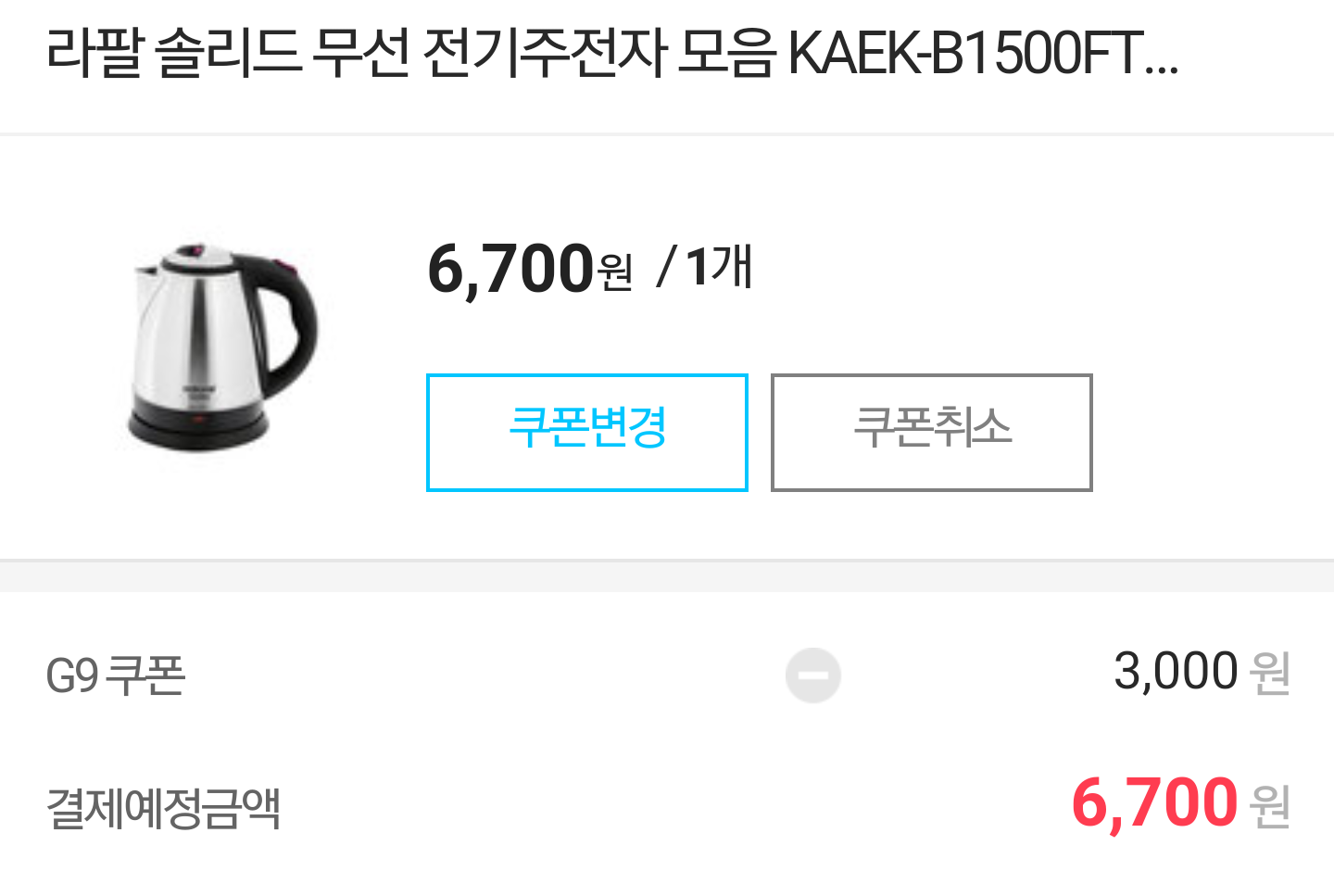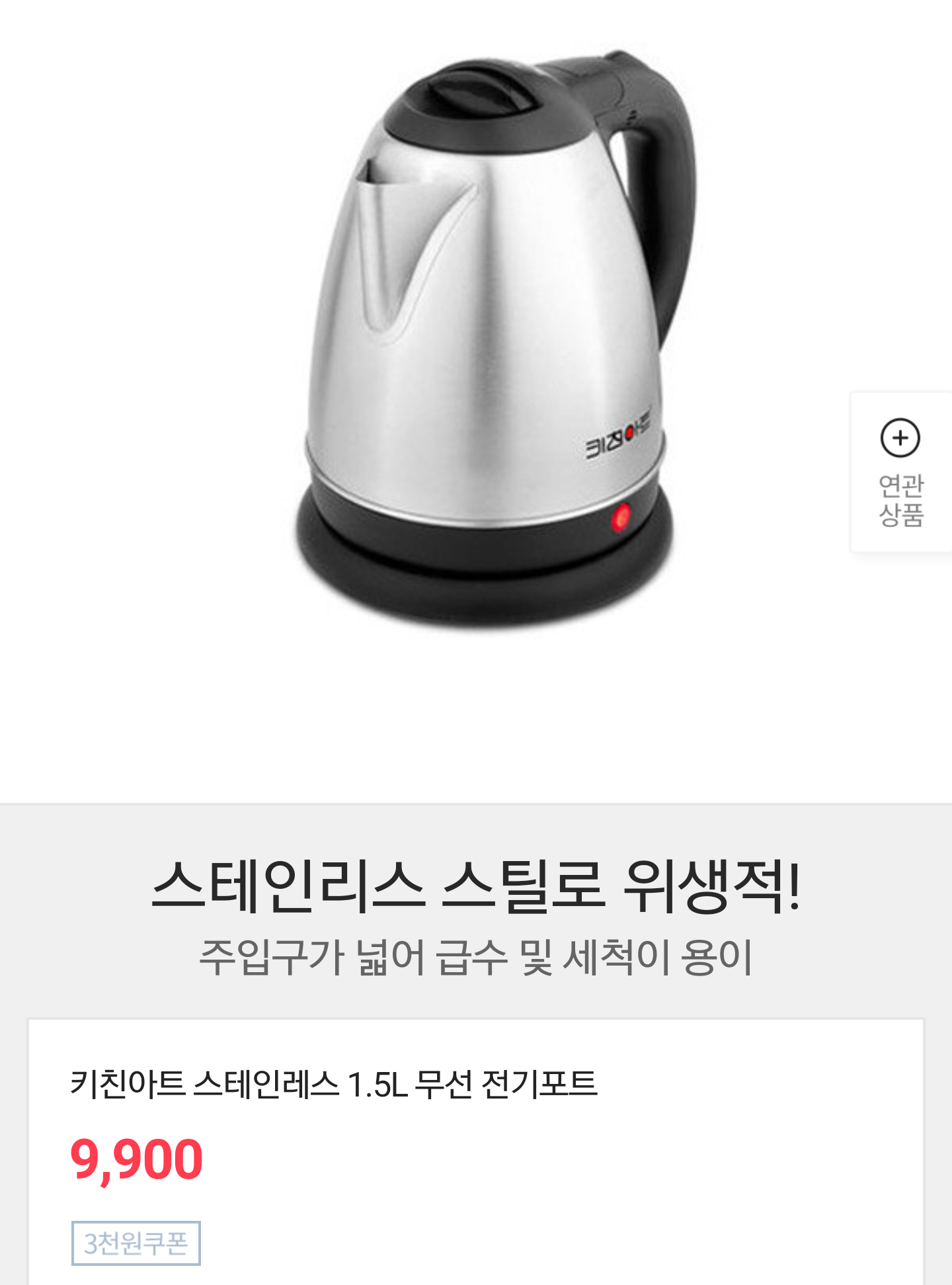 기존 사용하던 전기포트가 고장나 얼마전에 쿠폰 먹여서 8900원에 샀는데 더 저렴하네요..