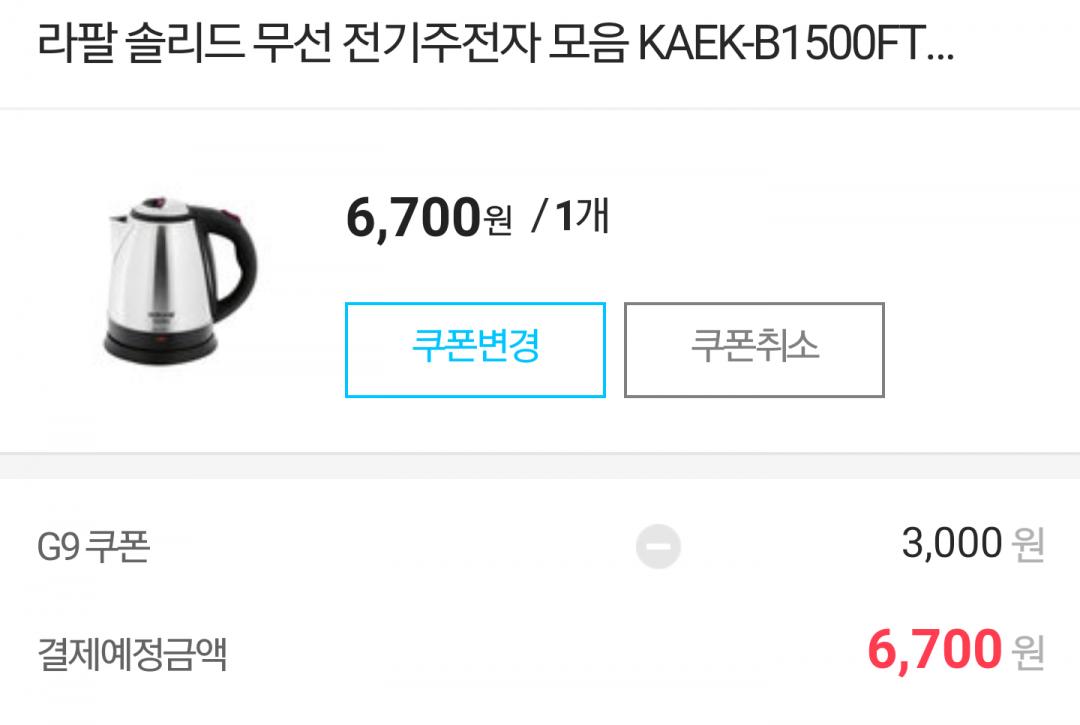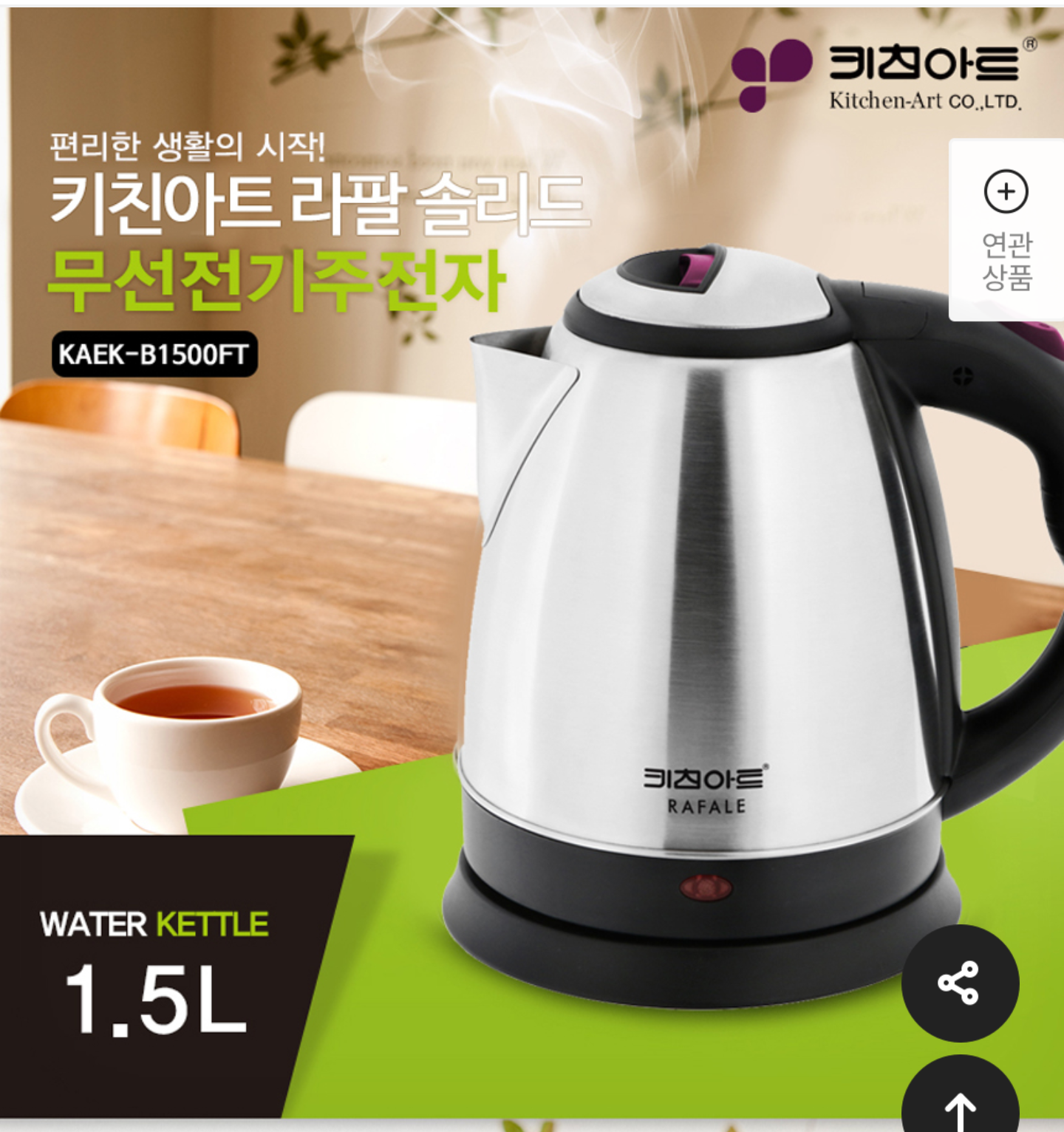 [g9] 키친아트 라팔 솔리드 무선 전기주전자 KAEK-B1500FT(9,700 / 0) 쿠폰적용시 6,700 g9캐시소진가능 > 국내핫딜