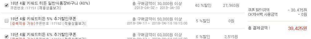 1. 히든쿠폰 (3만원 이상 40% + 중복쿠폰 5만원 이상 5%)