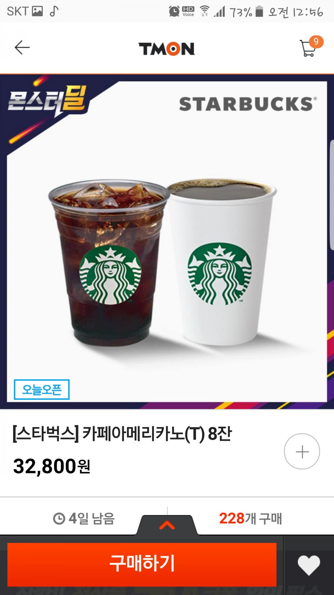 [티몬] 스타벅스 아메리카노 8잔 (28300/0)
