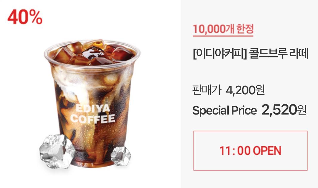 [11번가] 이디야 콜드브루라떼 40% (2,520원/무료) > 국내핫딜