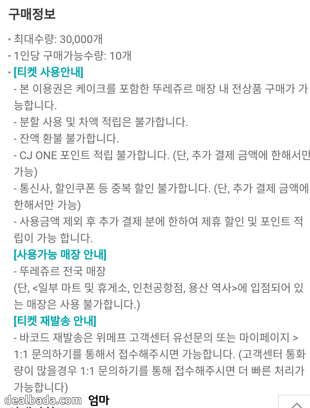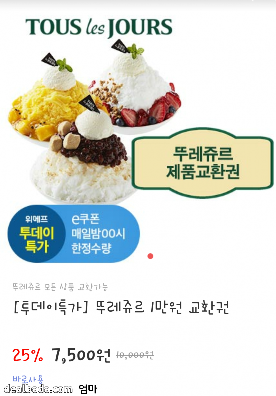 [위메프] 뚜레쥬르 1만원 교환권 (7,500원) > 국내핫딜