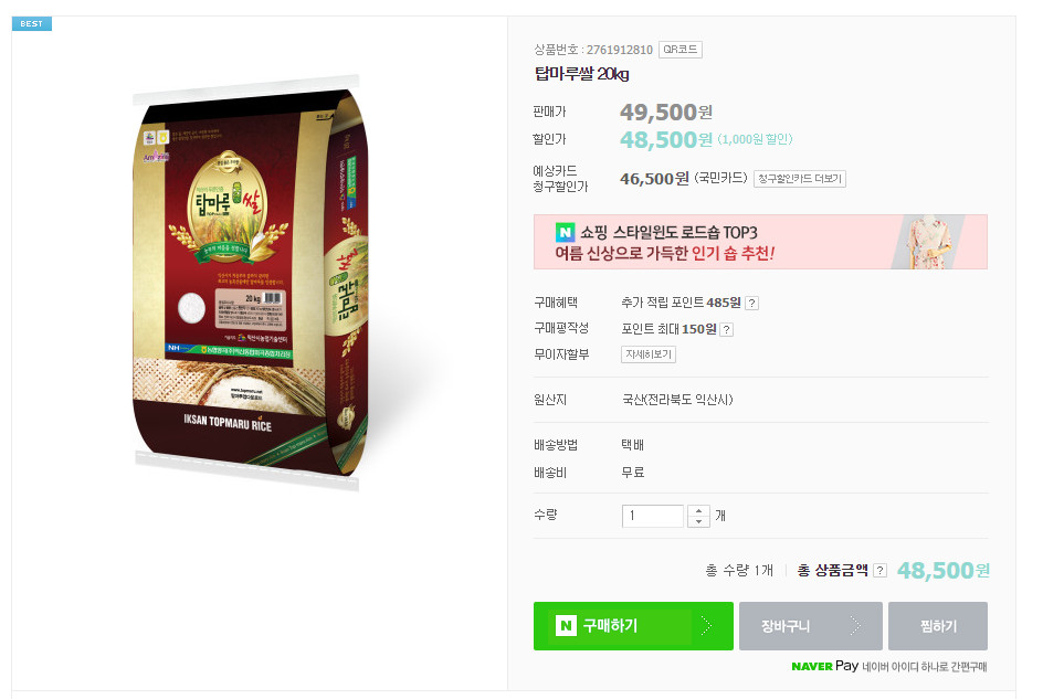 요즘 쌀값이 너무 올라서 단일품종 20kg면 이 정도라도 감지덕지한 가격이라 올려봅니다.